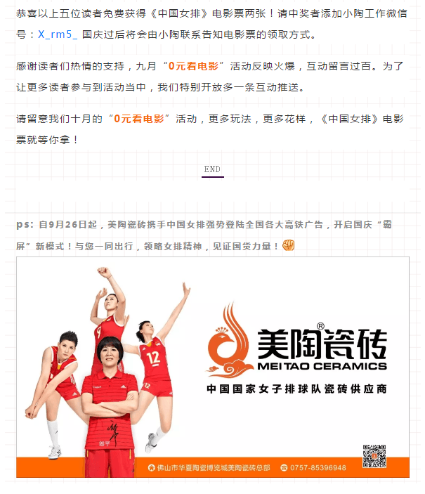 贈(zèng)票|《中國女排》電影票九月中獎(jiǎng)名單大公布!