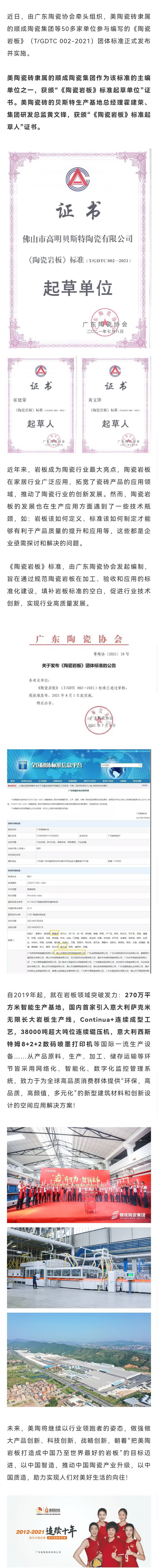榮譽丨美陶瓷磚榮獲《陶瓷巖板》標(biāo)準(zhǔn)起草單位證書