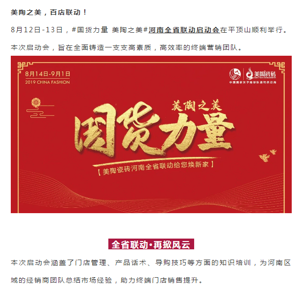 國貨力量 美陶之美丨河南省聯(lián)動(dòng)啟動(dòng)大會(huì)吹響新號角!