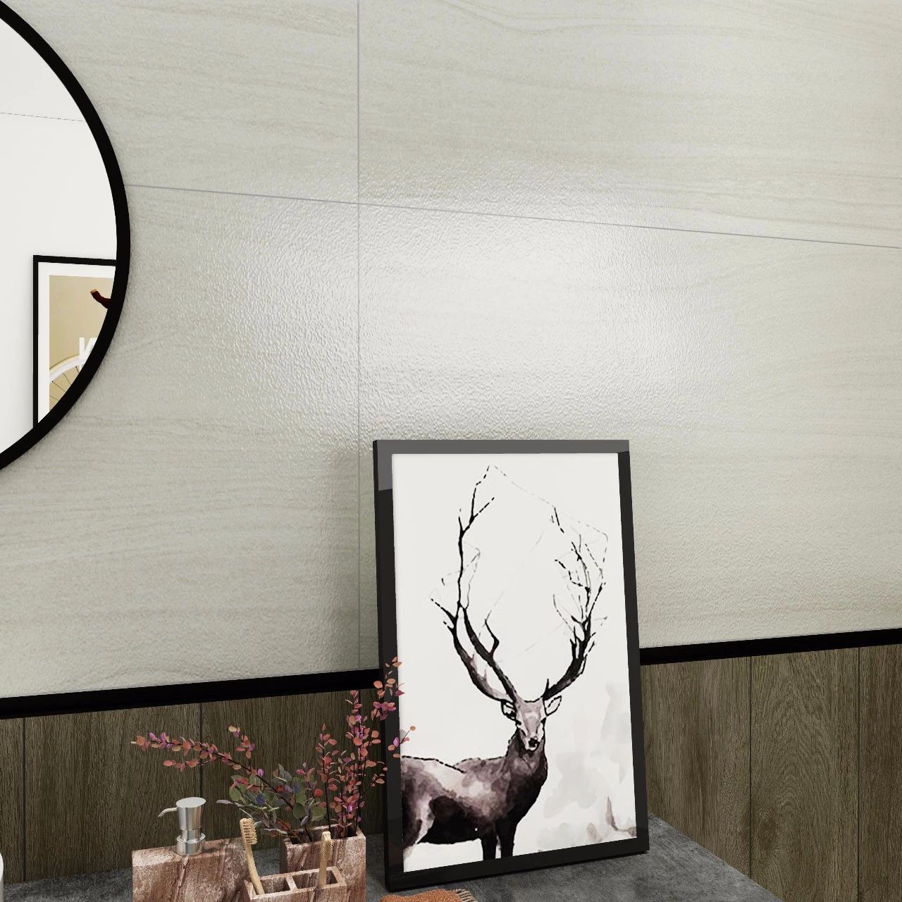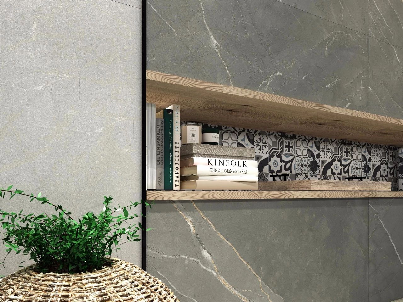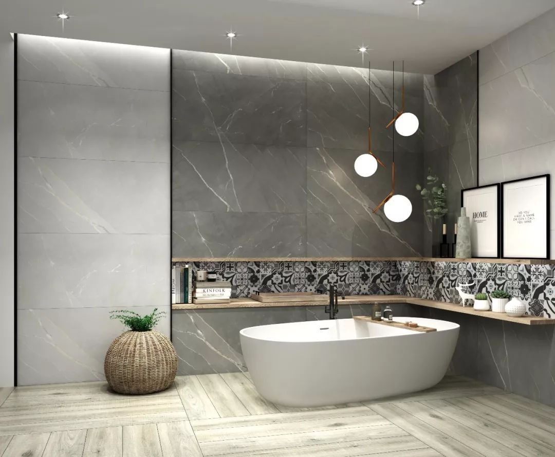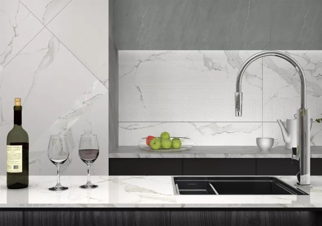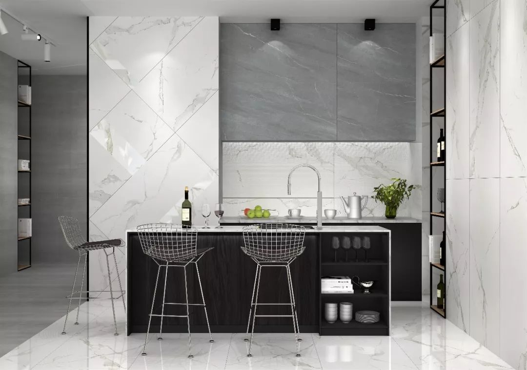大理石瓷磚需要更大規(guī)格呈現(xiàn),才能充分展示巖石脈絡(luò)的延伸感,尤其是600x1200 mm長方形能夠使得紋理更加生動、韻味!