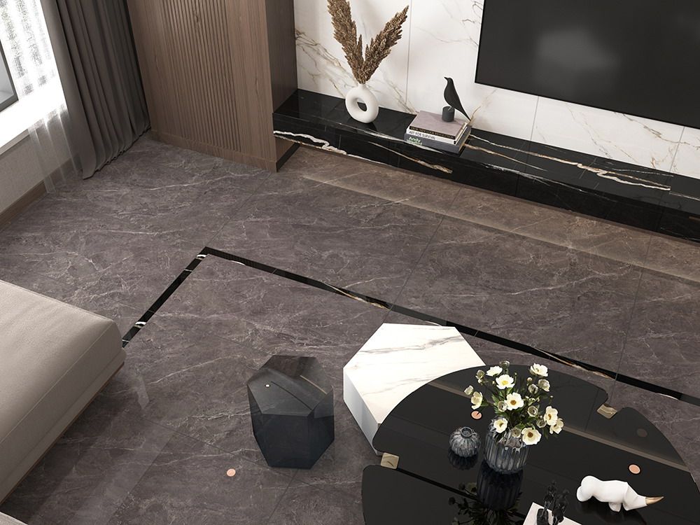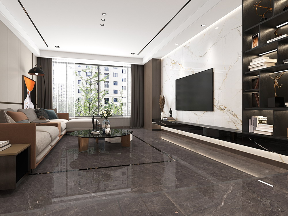 以啡色為基調(diào),磚面的自然紋理無序渲染 遠(yuǎn)觀如閃電劃破長空,近觀如萬流回歸大海 這種沉穩(wěn)低調(diào)的顏色搭配大氣的紋理 使得家居空間充滿格調(diào),又不失浪漫
