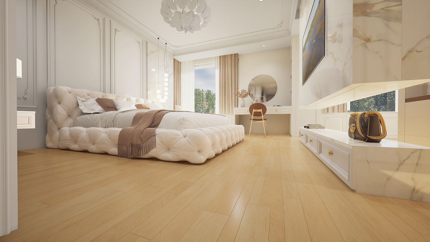 原木色調(diào)與暖黃色調(diào)錯落拼接 如光陰層疊的敘事,賦予地面溫暖而藝術的靈魂 原木啞韻與模具疊加工藝精妙結(jié)合 啞光反射,視覺溫潤舒適 模具疊加復刻真實木材的凹凸感,以工藝還原原木的自然之美